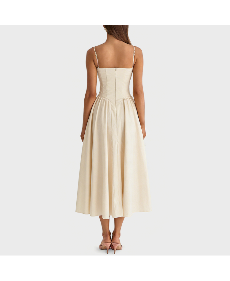 3. Waist-Defining Design: The dress features a waist-defining cut, accentuating the figure by hugging the waistline. The waist-defining design creates a slender waist, resulting in a more harmonious body proportion. The skirt drapes naturally, creating an elegant line and a more refined overall look.