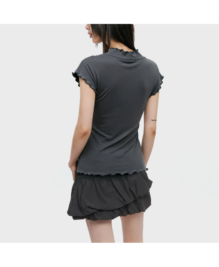 Deep V-neck Stretch Short-Sleeve Top