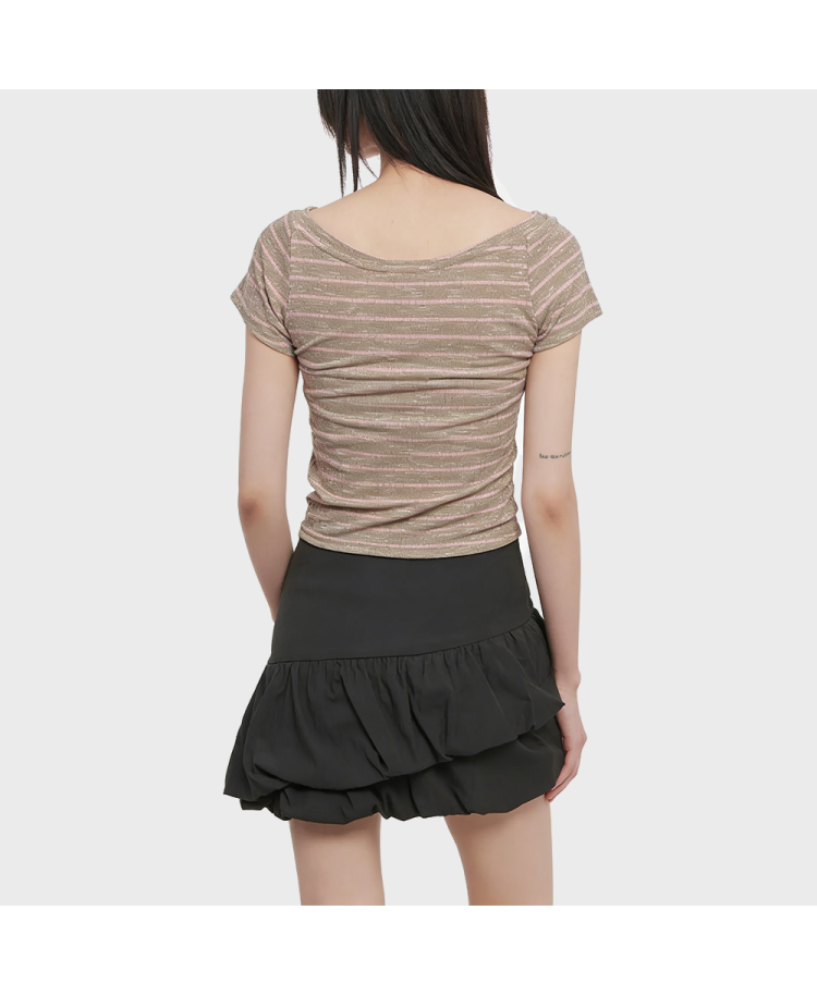 3. Retro Color-Blocked Stripe Design: The garment features color-blocked stripes, creating a retro visual effect. The rhythmic stripe arrangement enriches the overall visual layers, making the basic short-sleeve top more stylish and distinctive.
