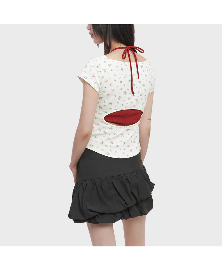 Floral Print Halter Neck Short-Sleeve Top