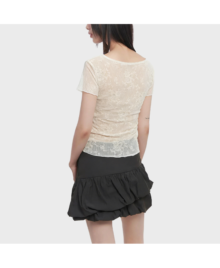 4. Lace Trim Design: Lace trim adorns parts of the garment, adding a delicate floral pattern and texture that enhances its layering and sophistication. The soft and elegant lace element lends a romantic touch to the simple design, elevating the overall visual quality.