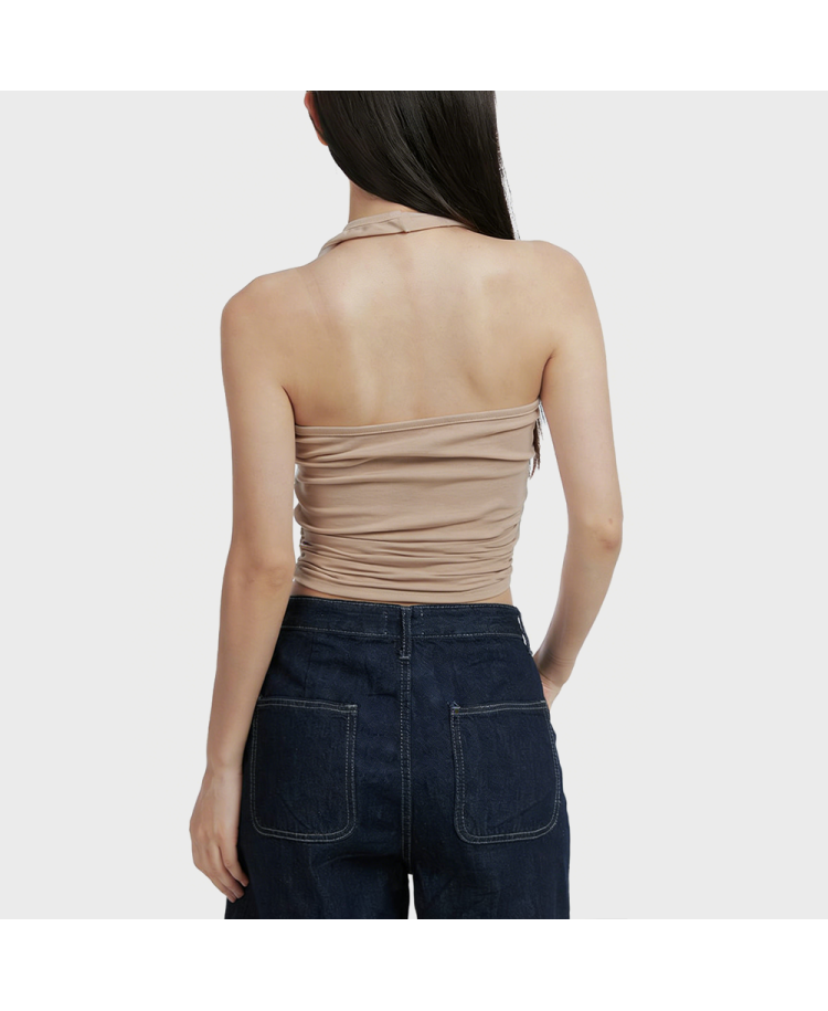 6. Sleeveless cropped design: The sleeveless cut enhances breathability and a refreshing feel. The cropped length naturally raises the waistline, visually lengthening the lower body when paired with high-waisted bottoms, resulting in a light and playful overall look.
