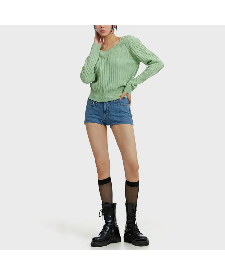 4. Frayed Hem Design: The frayed hem adds a casual and street style feel, making the overall look lighter and more playful. The frayed hem design softens the stiffness of the denim, increasing the relaxed and laid-back feel.