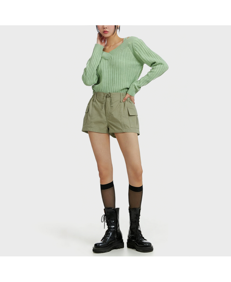 Sweet and Edgy Low-Rise Elastic Cargo Shorts